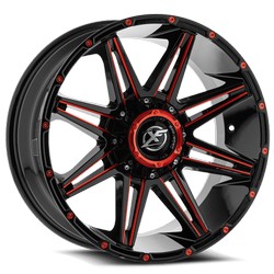 XF OFFROAD XF-224 Gloss Black Milled Red 20x9 8x165.1/8x170 et12 cb125.2